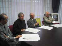 左から、 中村 誠 氏(JAGDA理事) 鈴木 健二 氏(青森県立近代文学館館長) 佐々木 英也 氏(岩手県立美術館館長) 福田 繁雄 氏(JAGDA会長) |
