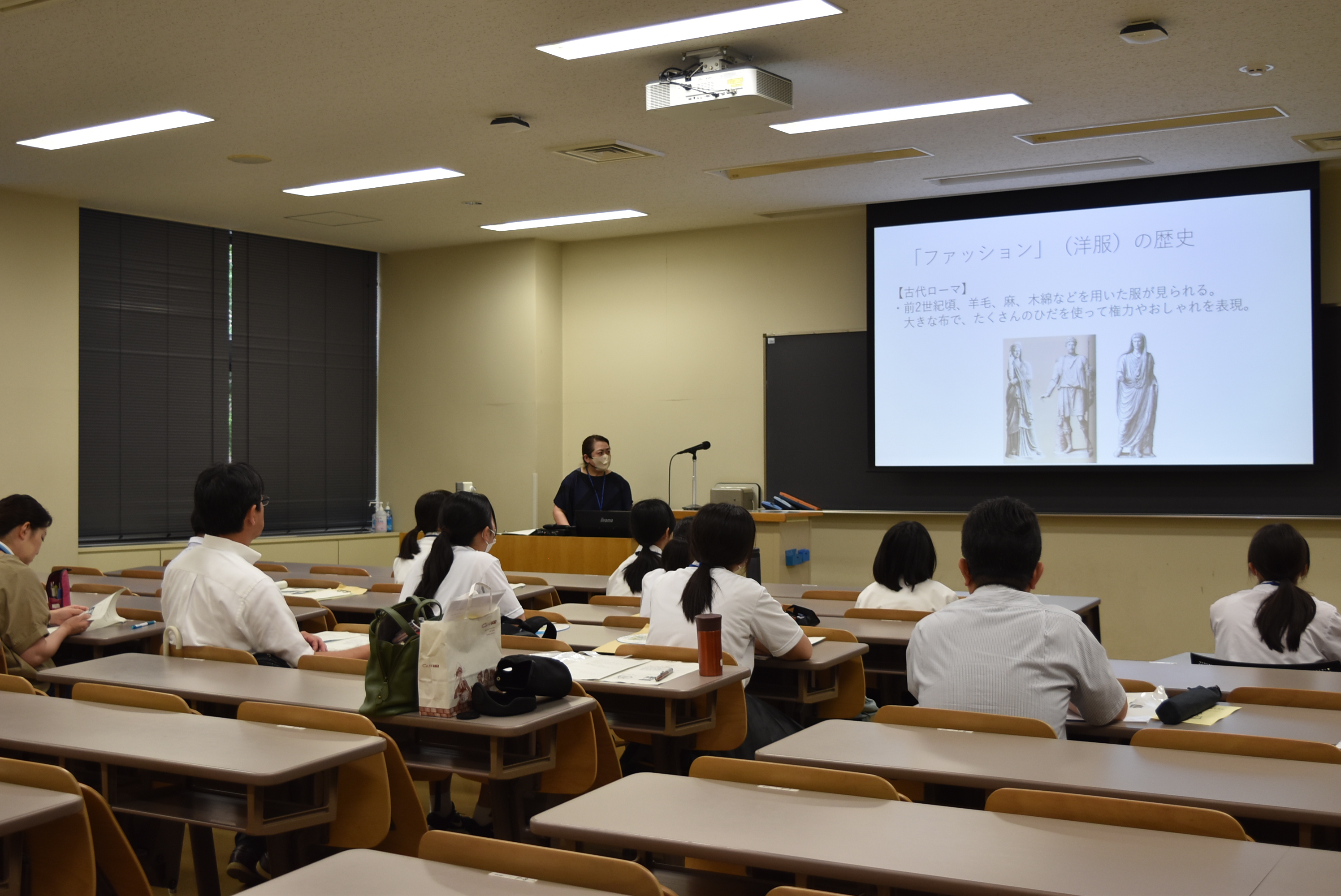 と き : 令和6年7月29日(月) ところ : 岩手県立大学(滝沢市) 対 象 : 市内中学生(希望者、保護者) 岩手県立大学を訪れ、講義体験やキャンパス見学を行いました。ミニ講義では「ファッション」を 受け、初めての大学講義を体験し、生活に密接に結びつく洋服について学びました。キャンパスツア ーでは、学生生活のイメージを深めることができ、将来の進路選択に役立てる機会となりました。