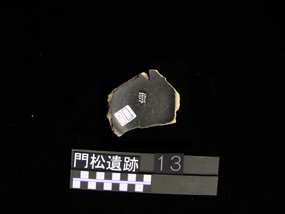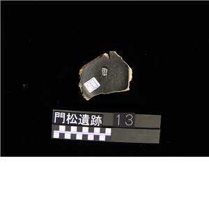ロクロ使用の土師器坏で、墨書されている。底部で、内面はミガキ後黒色処理されており、底部の切り離しは回転糸切りである。底部に墨書され「海」と考えられる文字が認められる。