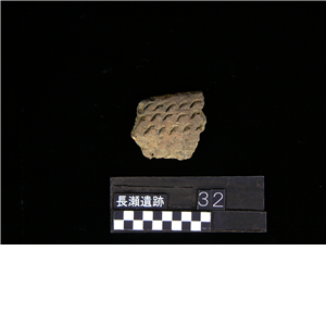 口唇部に絡状体圧痕文を持ち、口縁部に刻目状連続刺突文3段、体部に貝殻腹縁文を有する。